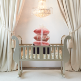 This captivating collection of rich peach luxurious cotton velvets combined with a silky blush damask on a beige background fabrics. A plush deluxe collection set for the posh palate. Dress your nursery with Baby Pillow Pops, for the perfect gift!