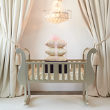 This tasteful collection is the epitome of true elegance and grace. In an alluring combination of fleur de lis in white and baby pink on silky creamy background and a matching embroidered creamy patterned fabric. Simply Charming. Dress your nursery with Baby Pillow Pop, for the perfect gift!