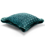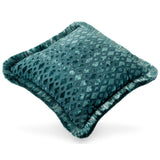 Bijou - of the Parisian Luxury Throw Pillow Collection Set. Bijou, a delicate textured teal cut velvet decorative pillow with an exquisite diamond geometric pattern. Made of ultra thin luminous fibers, inviting light into the room. This pillow commands attention. This pillow is decorated with a matching solid saturated turquoise brush trim.