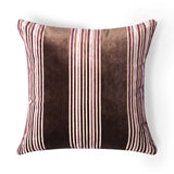 Bark – of the Lavender Luxury Throw Pillow Collection Set. Bark, a chic velvet brown striped pillow with purple stripes in an array of hues with an eclectic and contemporary design. The perfect accent pillow to add some sophisticated playfulness.