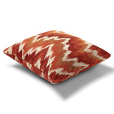 Flames - of the I'm On Fire Luxury Throw Pillow Collection Set. Flames, a zigzag decorative linen pillow of burnt orange and terracotta hues, creating the ultimate sky volcano melody. The woven fabric adds a natural and earthy feel. Add a splash of color to your living space with this unique pillow.